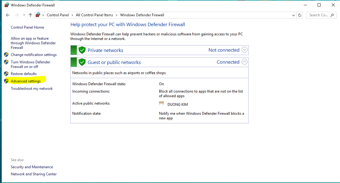 Vào Mục Firewall để khóa vMix19 với mạng