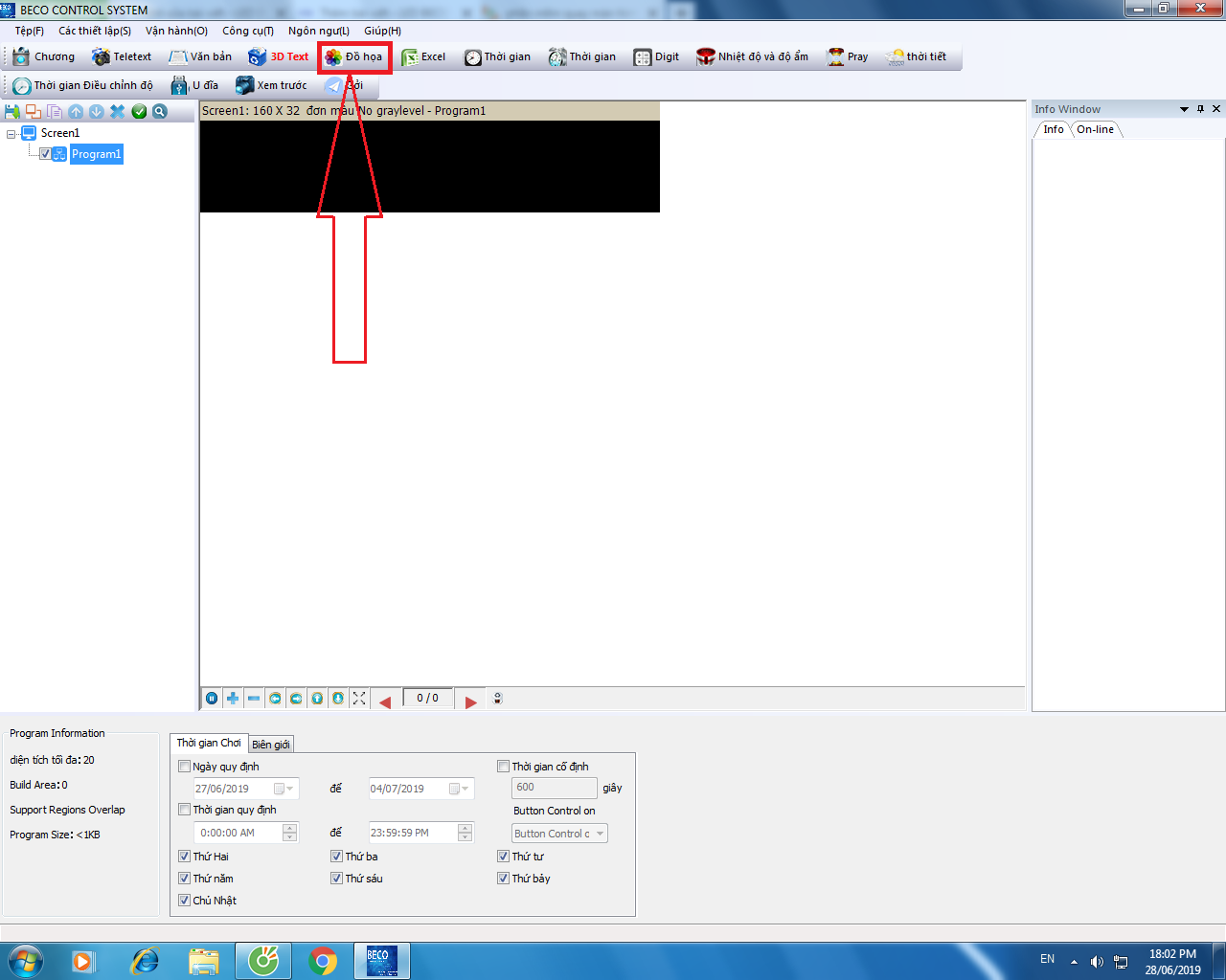 Đầu tiên vào phần mềm Led Beco Controll và chọn vào mục “đồ họa“