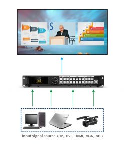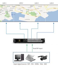 Note: Bạn có thể mở rộng đầu vào 2 tín hiệu 2K mở rộng, nguồn tín hiệu đầu vào (VGA DVI SDI) hoặc một tín hiệu đầu vào 4K (có thể chọn DP1.1 HDMI1.4)