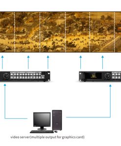 Hợp tác với máy chủ video, card đồ họa chia tín hiệu và xuất ra nhiều đèn LED-750H và xếp tầng để đạt được kết nối cực rộng.