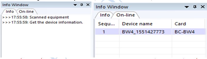 3) Sau khi kết nối WIFI, trong phần mềm, nó có thể tìm thấy thiết bị. Hiển thị dưới dạng bên dưới: đi ra thông tin tên thiết bị.