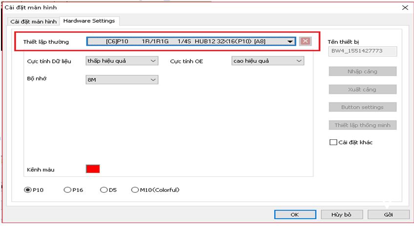 - Đối với Module P10 3 màu: Chọn cấu hình [C6]